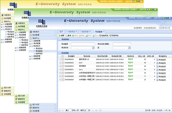 南方電網(wǎng)E學(xué)院系統(tǒng)項目是南方電網(wǎng)公司內(nèi)部培訓(xùn)的E化平臺。本系統(tǒng)是一套專業(yè)的考試、培訓(xùn)、學(xué)習(xí)管理解決方案,采用開放、動態(tài)的系統(tǒng)架構(gòu),將傳統(tǒng)的考試培訓(xùn)模式與先進(jìn)的網(wǎng)絡(luò)應(yīng)用相結(jié)合,實現(xiàn)考試在線申請、自動審核、定時考試、遠(yuǎn)程題庫維護(hù)、試題形式現(xiàn)代化多樣性、考試人員數(shù)量的強制控制、自動組卷、電子試卷答題、自動即時評分、考生考試情況實時記錄、考試多項分析統(tǒng)計、多項防作弊技術(shù)、考生信息管理查詢等功能。可使用戶完全根據(jù)自身應(yīng)用特點快速構(gòu)建考試培訓(xùn)平臺系統(tǒng),實現(xiàn)對考試、培訓(xùn)、學(xué)習(xí)的高效管理。