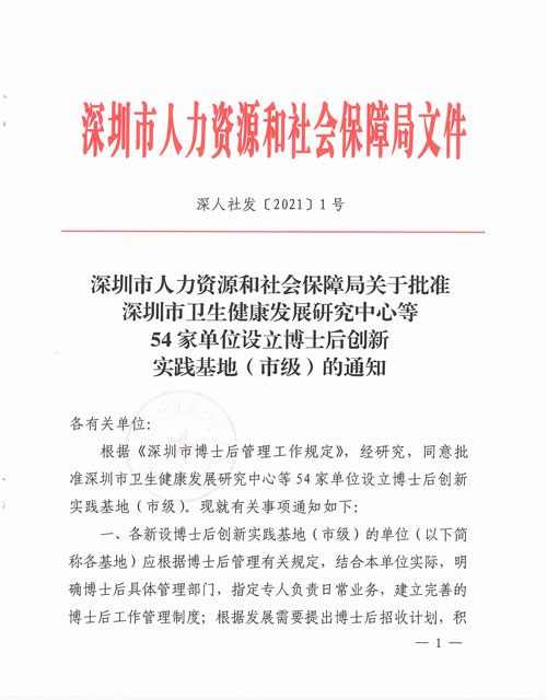近日,深圳市人力資源和社會保障局發(fā)布“關于批準深圳市衛(wèi)生健康發(fā)展研究中心等54家單位設立博士后創(chuàng)新實踐基地(市級)”的通知(深人社發(fā)〔2021〕1號)。經深圳人力資源和社會保障局研究批準,深圳市遠行科技股份有限公司等54家單位設立博士后創(chuàng)新實踐基地。