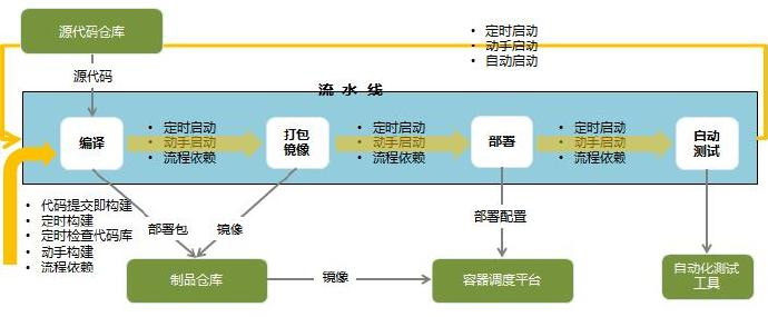 構(gòu)建操作:構(gòu)建我們通常采用Maven進(jìn)行自動化構(gòu)建,構(gòu)建完成輸出一個或多個Jar包或War包。注意常規(guī)方式下構(gòu)建完執(zhí)行進(jìn)行部署操作,部署操作一般就是將構(gòu)建的結(jié)果拷貝到我們的測試環(huán)境服務(wù)器,同時對初始化腳本進(jìn)行啟動等。而在DevOps下,該操作會變成兩個操作,即一個打包,一個部署。打包是將構(gòu)建完成的內(nèi)容制作為鏡像,部署是將鏡像部署到具體的資源池和指定集群。
