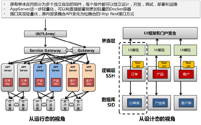 很多單體應(yīng)用有時(shí)候也在強(qiáng)調(diào)是基于組件化和模塊化的開始思路開發(fā)的,或者說(shuō)是基于SOA架構(gòu)開發(fā),那從運(yùn)行態(tài)和設(shè)計(jì)態(tài)分別來(lái)看的話可以看到。