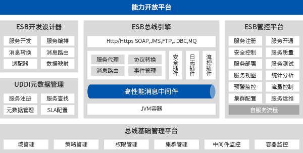 遠(yuǎn)行ESB服務(wù)總線基于主流高性能消息中間件和規(guī)則引擎自主研發(fā),包括ESB開發(fā)設(shè)計器,消息中間件和ESB總線引擎,服務(wù)全生命周期管理和能力開放平臺。