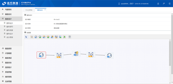 遠(yuǎn)行ESB服務(wù)總線提供可視化的服務(wù)在線設(shè)計能力,可視化代理服務(wù),數(shù)據(jù)映射,數(shù)據(jù)庫適配,JMS消息適配,協(xié)議轉(zhuǎn)換等各種設(shè)計功能。