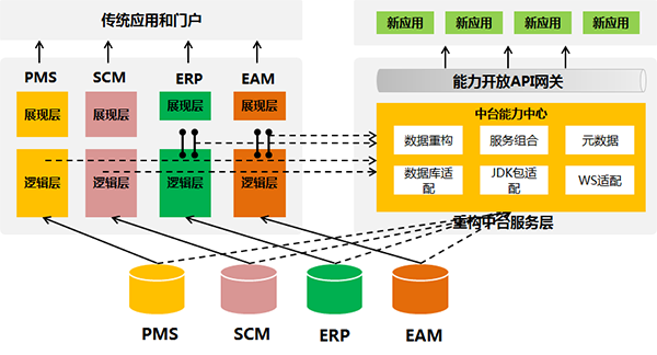 在構(gòu)建新的中臺能力服務(wù)層的時候,為了對已有的遺留系統(tǒng)影響最小,給出通過適配和定制的方式來對中臺層進行重構(gòu):