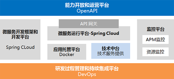 業(yè)務(wù)組件共性和基礎(chǔ)的能力通過微服務(wù)模塊下沉到平臺層建設(shè),形成技術(shù)中臺